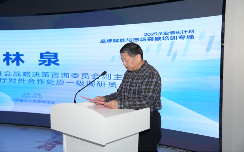 2025年3月15日,由山东省农业贸易促进会主办,主题为“食用农产品全链服务标准及品牌化运营”的“2025企业增长计划——品牌赋能与市场突破”培训专场,在中国(山东)农产品贸易促进创新中心成功召开。